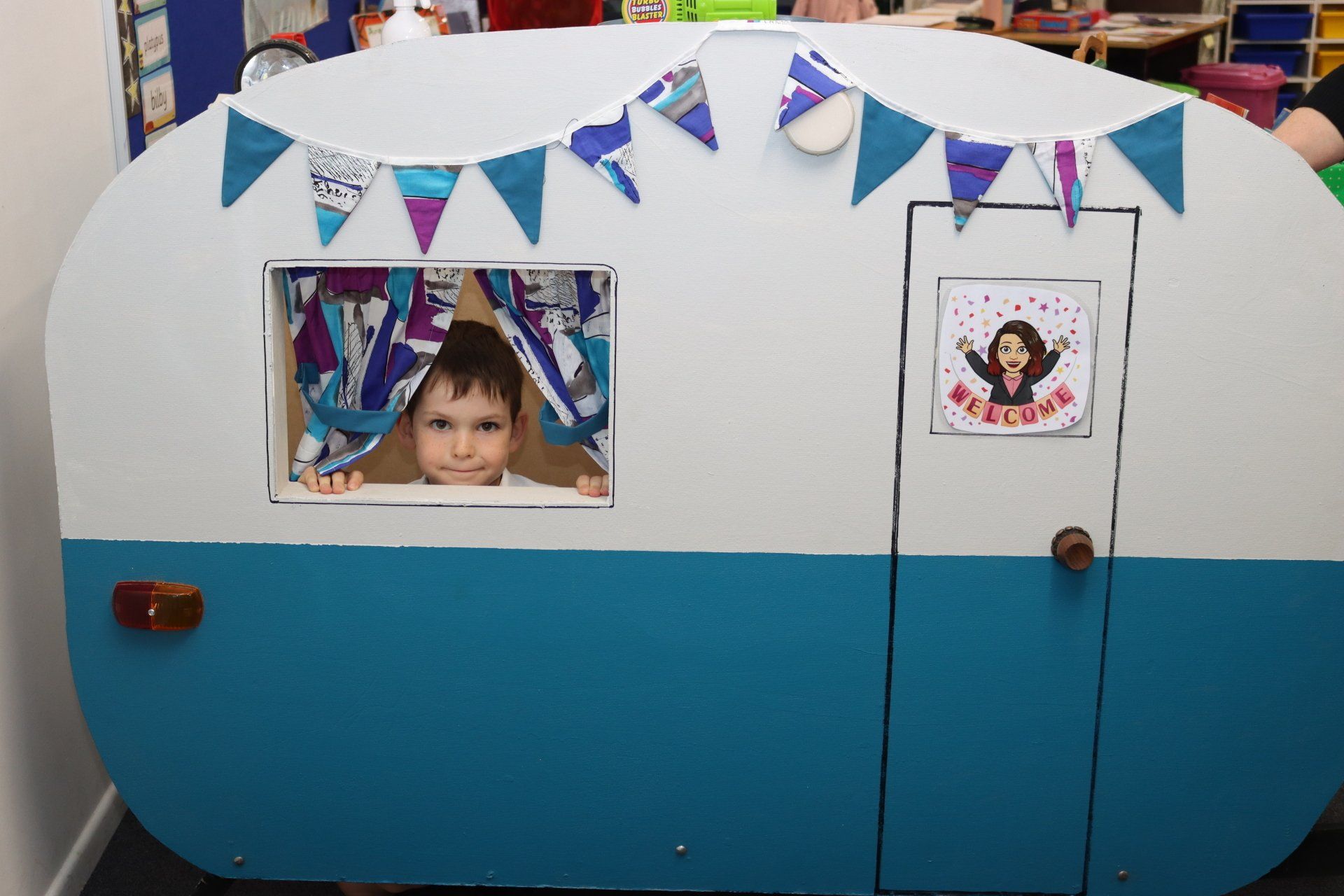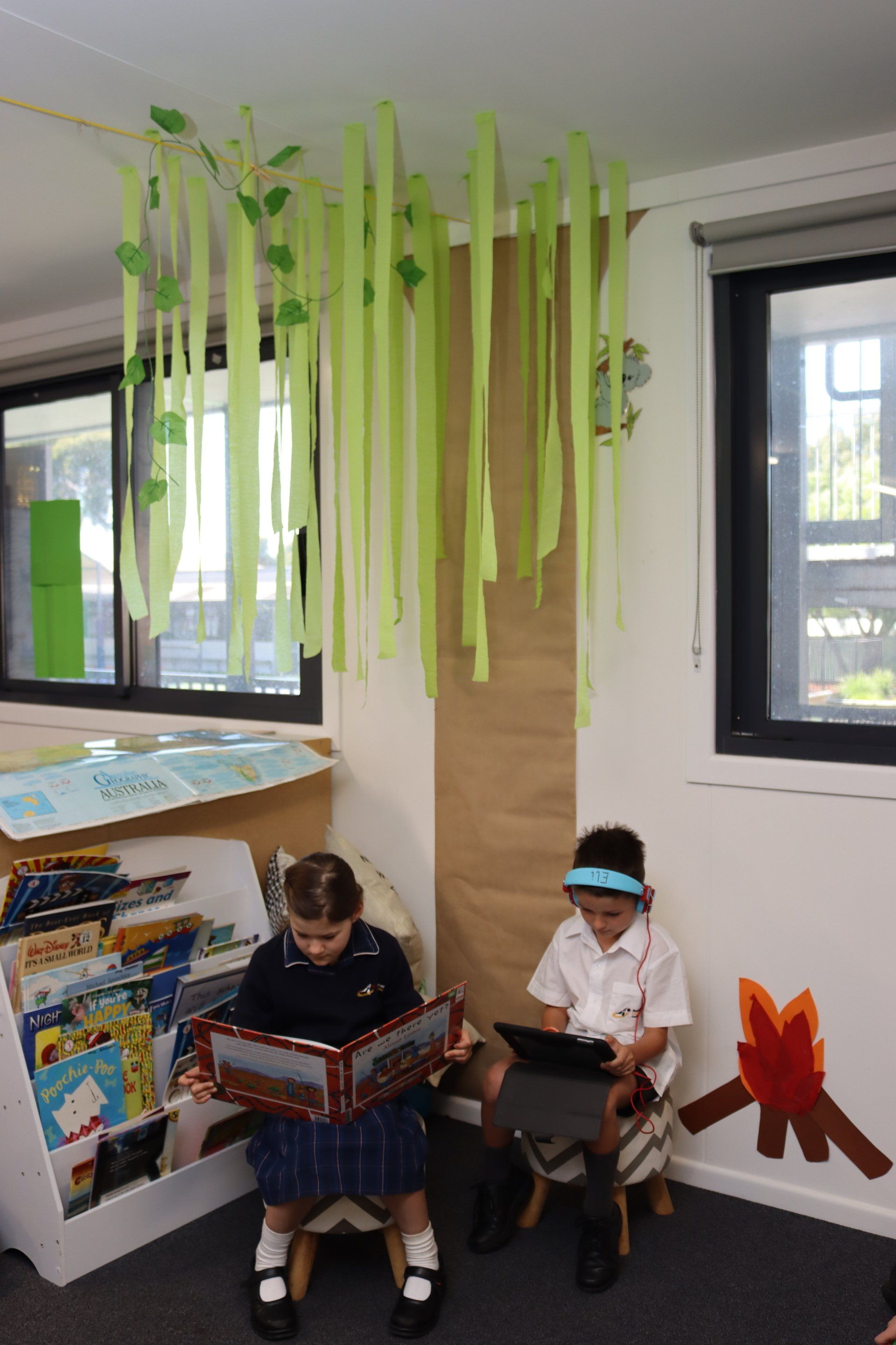 Students will be provided with everyday scenarios which incorporate maths including having spending money to shop at Mindil beach, paying for petrol, reading clocks and timetables in Sydney and using money wisely. Students will complete a digital travel journal and learn letter writing through making postcards. They will also consider the importance of places to people in their community and people from different cultures. Both classrooms feature a tree and campfire, with the Lower Primary B room even having a caravan for our happy campers!