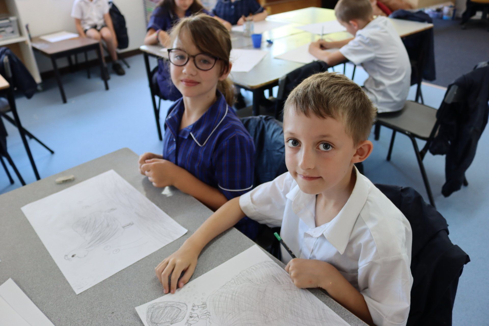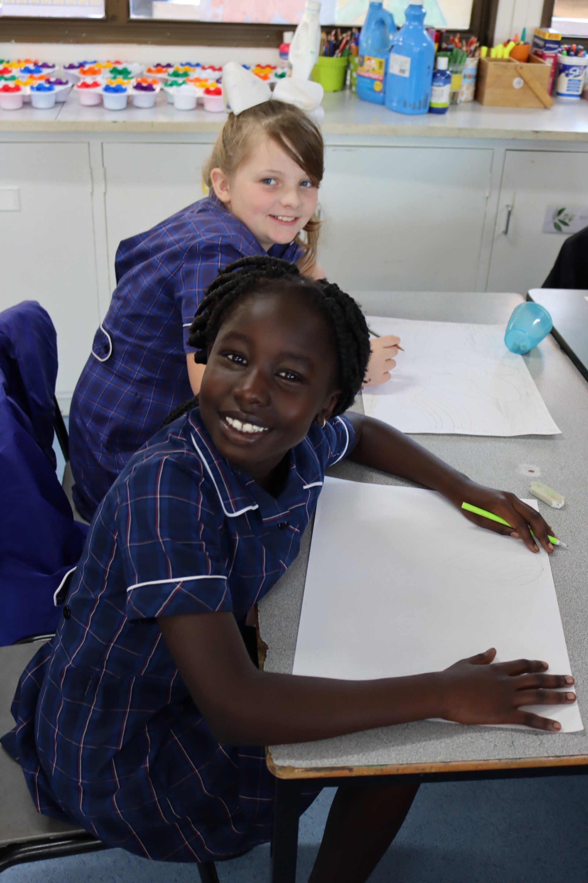 ‘Keep it curved, it’s Summer’ was the inspiration for the Year 4 students Visual Art class today. The students took their class in the newly revamped Primary Art room. The space now features a large storeroom for art supplies and a carpeted seating area, along with plenty of bench and desk space to set out artwork. We look forward to seeing some of the creative artwork that come from the Prep-Year 4 students who will use the space.