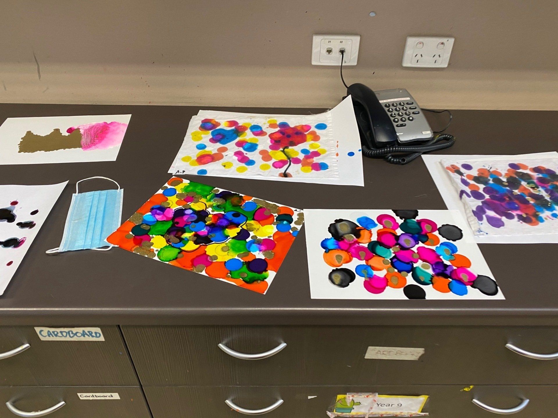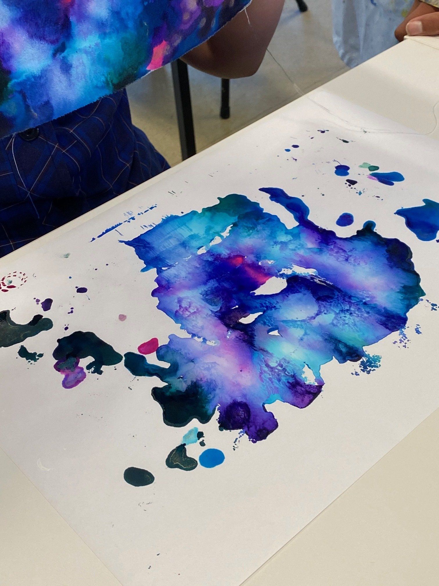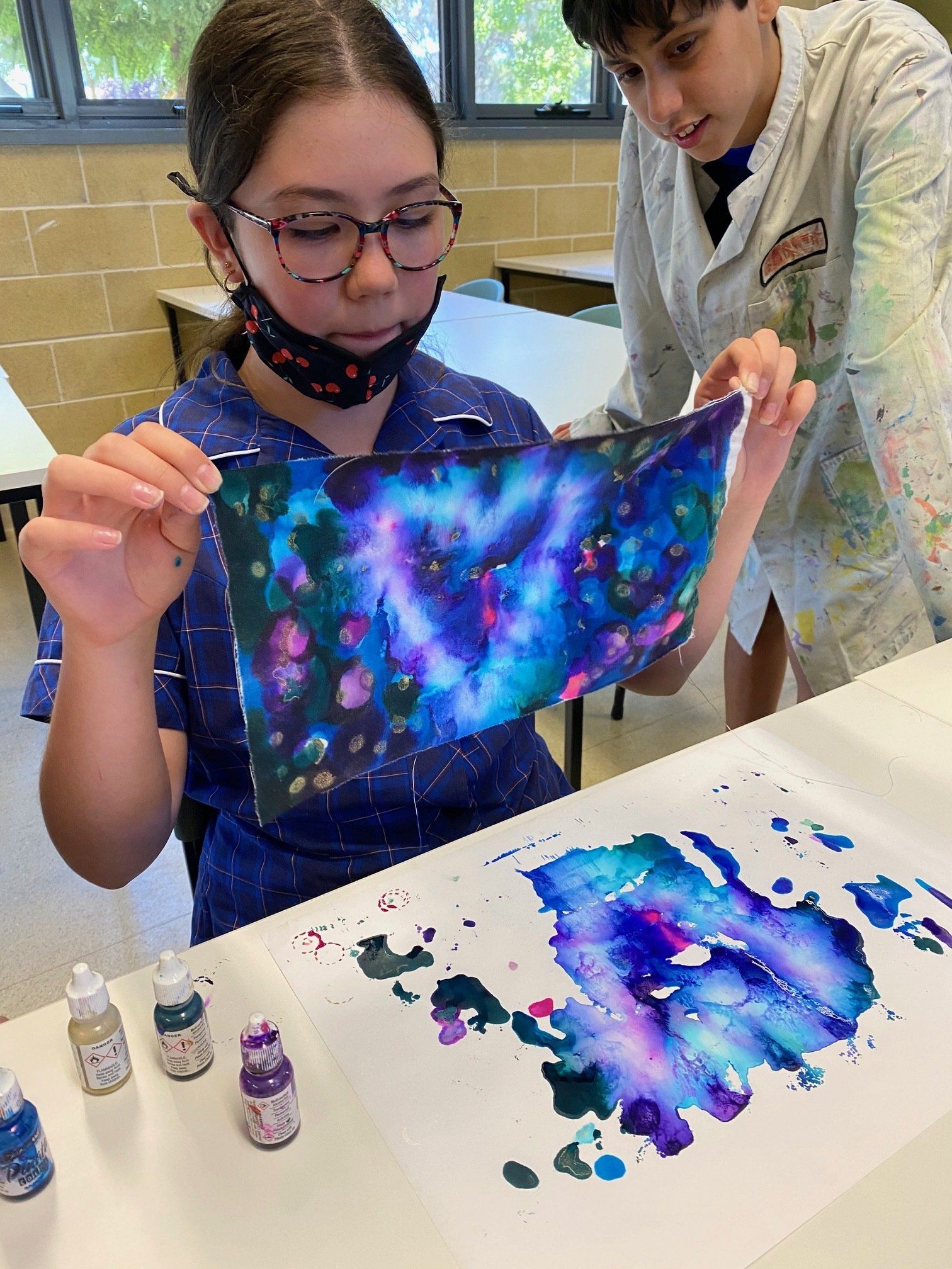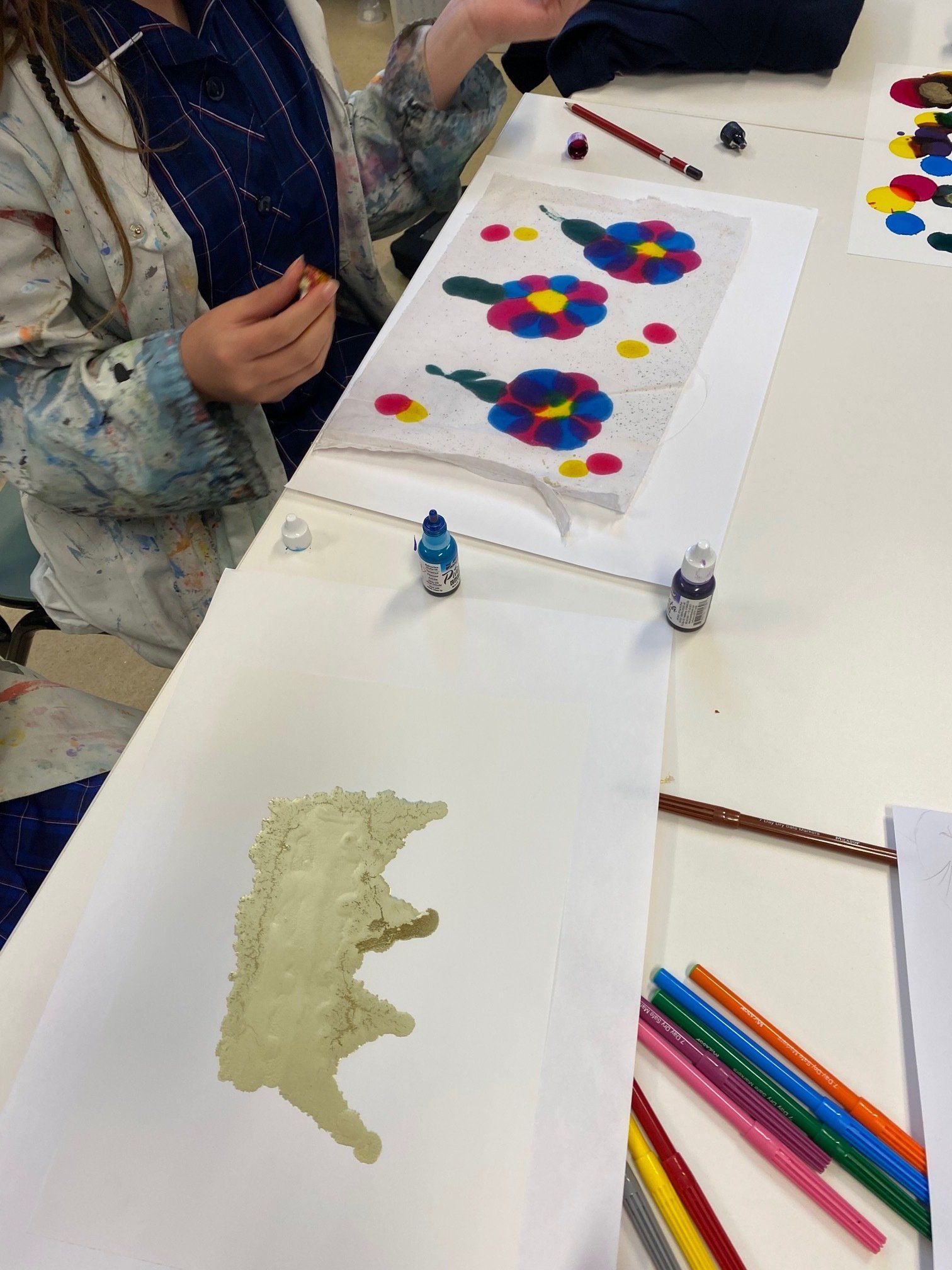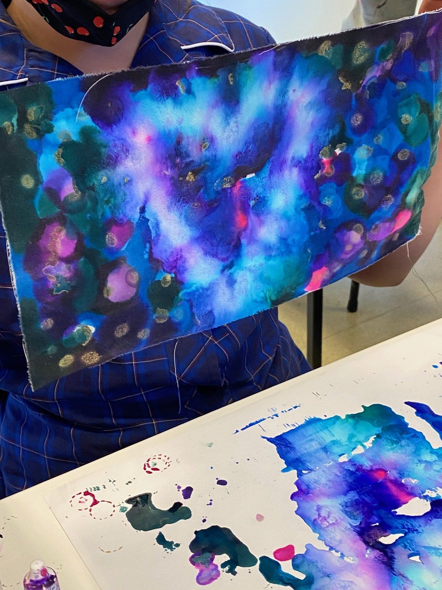 They have started with a very exciting task of using alcohol inks on both mineral paper, which is soft like a fabric and made of mineral stone powder, as well as using the inks on some cotton fabric. The inks are really vibrant and blend in interesting ways to create some beautiful results.